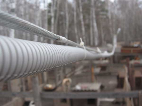 - Теперь конец своей проволоки вам необходимо будет соединить с кабелем. Сделать это достаточно просто и вам необходимо просто загнуть струну крючком и с ее помощью пробить край изоляции. Также есть и альтернативный способ для выполнения, которого необходимо обернуть несколько раз струну вокруг кабеля после этого место соединения можно просто заизолировать. Благодаря этому выступы кабеля не будут цепляться за ребра гофрированной трубы.