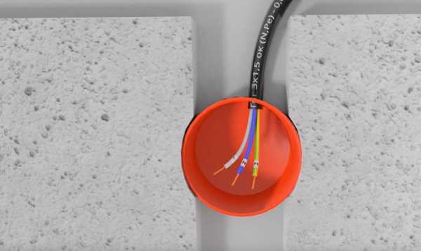 Рассмотрим процесс монтажа с самого начала. Первым делом заводите трехжильный кабель ВВГнг-Ls 3*1,5мм2 от автомата в щитке в распредкоробку. Обозначаете и маркируете его жилы: фаза, ноль, земля.