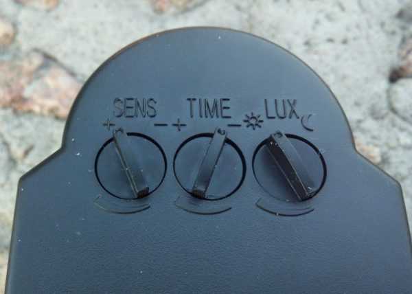Такие настройки имеют вид специальных потенциометров, предназначенных для регулировки – это установка задержки отключения «TIME», регулировка порога освещенности «LUX» и регулятор установки чувствительности к инфракрасному излучению «SENS».