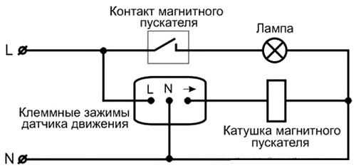 Подключение магнитного пускателя к датчику движения при большой нагрузке
