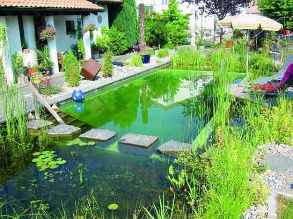 Такой пруд не предназначен для купания, однако будет выглядеть так, как будто создан самой природой, т.е. иметь натуральный дизайн, чего не скажешь о водоеме возле грядок.