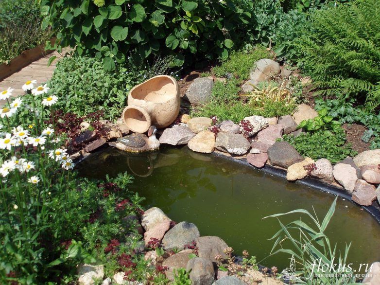Варианты декора берега пруда