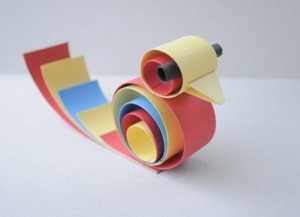 Тело птички можно сделать не в форме круглого рулона – а в форме бумажной петельки. И тогда к такому телу можно приклеить длинный отросток хвоста. На хвост можно наклеить слоями бумажные завитки как на фото ниже.