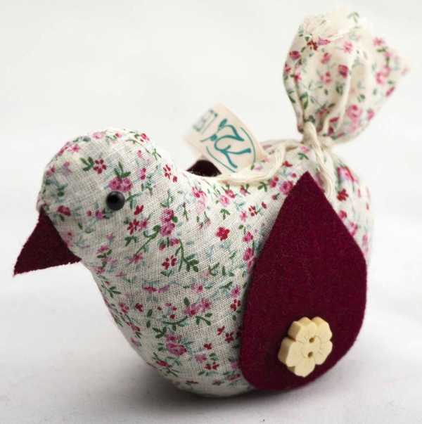 Очень милые поделки получаются из ткани. Ниже описана процедура по созданию птички из фетра.