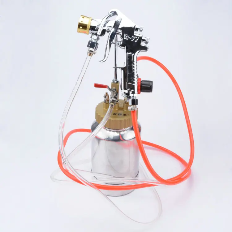 Типы распылителей краски также различаются по мощности. Чашечные распылители вмещают около литра краски; другие модели имеют большие резервуары или сифонную краску непосредственно из банки или барабана. Кроме того, чашечные опрыскиватели бывают двух типов: с самотечной подачей (чашка сверху) и с обычной подачей (чашка снизу).