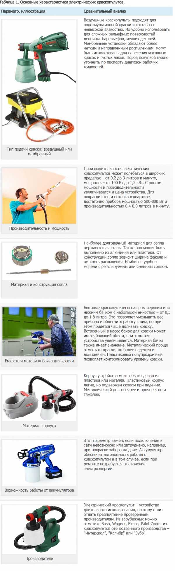 Кроме того, при выборе электрического краскопульта нужно внимательно отнестись к следующим параметрам: