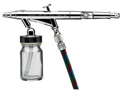 Распылители этого типа профессиональные, и выпускаются разных видов: краскопульты низкого, высокого давления и универсальные. Одним из преимуществ является наличие множества разнообразных насадок (сопел), что позволяет выполнить работу любой сложности. Ёмкости прибора варьируются от 100 мл и более.