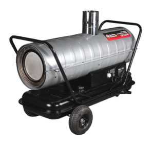 - Тепловые пушки дизельные. Дизельная пушка — хорошая вещь, когда есть доступ к недорогой солярке, неважно какого качества. По экономическим эксплуатационным показателям такая пушка может дать фору всем остальным видам обогрева. Смущает только одно — стартовая цена тепловой пушки на солярке. Она будет стоить примерно тысячу долларов и выше. Если захочется сэкономить, тогда придется выбрать между пушками прямого и непрямого нагрева. Разница в том, что продукты сгорания солярки попадают в гараж в первом случае. Пушки непрямого нагрева стоят чуть ли не вдвое дороже, а гарь от солярки выводится наружу, но воздух для процесса горения пушка в любом случае берет в гараже. Выходит, что с точки зрения стартовой цены и опасности отравиться продуктами сгорания топлива, для маленьких гаражей лучше отказаться от идеи с дизельной пушкой. Она подойдет для крупного и просторного цеха, но никак не подходит для теплиц.
