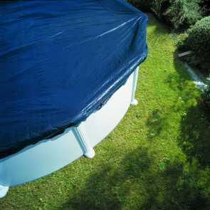 Они предотвращают загрязнение бассейна и облегчают его чистку весной. Материал зимнего покрывала для бассейна довольно разнообразен. Это и слоистый полиэтилен, отличающийся большей, чем у летнего покрытия, плотностью, прочностью и толщиной. Для крепления таких одеял на чашах круглой и овальной формы в тентах предусмотрена полая кайма, через которую и пропускается крепежный шнур. А для прямоугольных бассейнов большого размера используется пленка с петлями и натяжным кабелем.