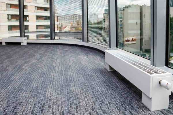 Напольные водяные конвекторы отопления рассматриваются как идеальное решение для кинотеатров, выставочных павильонов и прочих зданий с высокими панорамными окнами от пола до потолка.