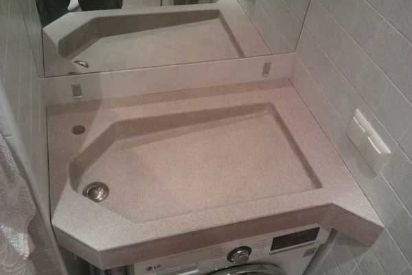 Π Π°ΠΊΠΎΠ²ΠΈΠ½Π° ΡΡΠΎΠ»Π΅ΡΠ½ΠΈΡΠ° Π½Π°Π΄ ΡΡΠΈΡΠ°Π»ΡΠ½ΠΎΠΉ ΠΌΠ°ΡΠΈΠ½ΠΎΠΉ β ΡΡΠΎ ΠΈΠ½ΡΠ΅ΡΠ΅ΡΠ½ΡΠΉ ΠΈ ΡΡΠΈΠ»ΡΠ½ΡΠΉ Π²Π°ΡΠΈΠ°Π½Ρ, ΠΊΠΎΡΠΎΡΡΠΉ ΠΏΠΎΠ΄Ρ ΠΎΠ΄ΠΈΡ Π΄Π»Ρ Π΄ΠΎΡΡΠ°ΡΠΎΡΠ½ΠΎ ΠΏΡΠΎΡΡΠΎΡΠ½ΡΡ ΡΠΎΠ²ΡΠ΅ΠΌΠ΅Π½Π½ΡΡ Π²Π°Π½Π½ΡΡ ΠΊΠΎΠΌΠ½Π°Ρ. ΠΠ°ΡΠΈΠ½ΠΊΠ° ΡΠ°ΡΠΏΠΎΠ»Π°Π³Π°Π΅ΡΡΡ ΠΏΠΎΠ΄ ΡΡΠΎΠ»Π΅ΡΠ½ΠΈΡΠ΅ΠΉ, ΡΡΠΎ ΡΠ²Π»ΡΠ΅ΡΡΡ Π±ΠΎΠ»Π΅Π΅ Π±Π΅Π·ΠΎΠΏΠ°ΡΠ½ΡΠΌ Π²Π°ΡΠΈΠ°Π½ΡΠΎΠΌ. ΠΠ΄Π½Π°ΠΊΠΎ, Ρ ΠΏΠΎΠ΄ΠΎΠ±Π½ΠΎΠΉ ΠΊΠΎΠ½ΡΠΈΠ³ΡΡΠ°ΡΠΈΠΈ Π΅ΡΡΡ ΠΌΠΈΠ½ΡΡ: ΠΎΠ±ΡΡΠ½ΠΎ ΡΠ°ΠΊΠΈΠ΅ ΠΌΠΎΠΉΠΊΠΈ ΠΈΠΌΠ΅ΡΡ Π²ΡΡΠΎΠΊΡΡ ΡΡΠΎΠΈΠΌΠΎΡΡΡ.