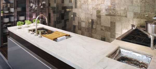 Если установить тумбу с кухонной раковиной у окна, солнечные лучи будут попадать на поверхность, подчеркивая роскошь камня.