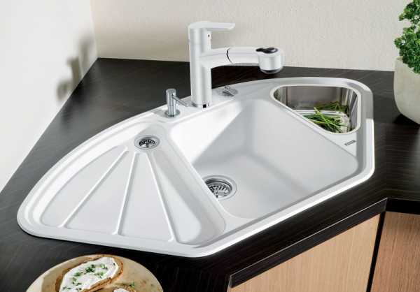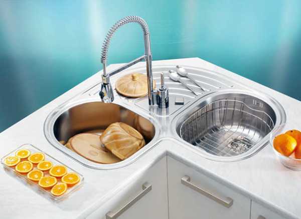 Как выбрать мойку и потом не раскаяться в выборе? Советуем обратить внимание на угловые модели: пользоваться ими удобнее, чем обычными. К тому же, за фруктами и сковородками не придется далеко тянуться.