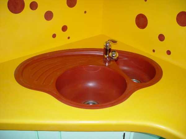 Раковины из композитных материалов имеют особый состав, 80 процентов изделия составляет каменная крошка, оставшиеся – полимерный состав. Основные достоинства: мойки практически бесшумные, предполагают любую расцветку, очень долговечны, не боятся перепадов температур, не нуждаются в уходе. К недостаткам можно отнести тяжесть мойки и её достаточно высокую стоимость.