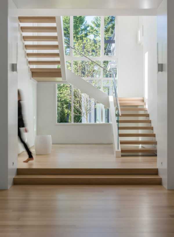 Дизайн двухмаршевой лестницы с площадкой (фото интерьера)