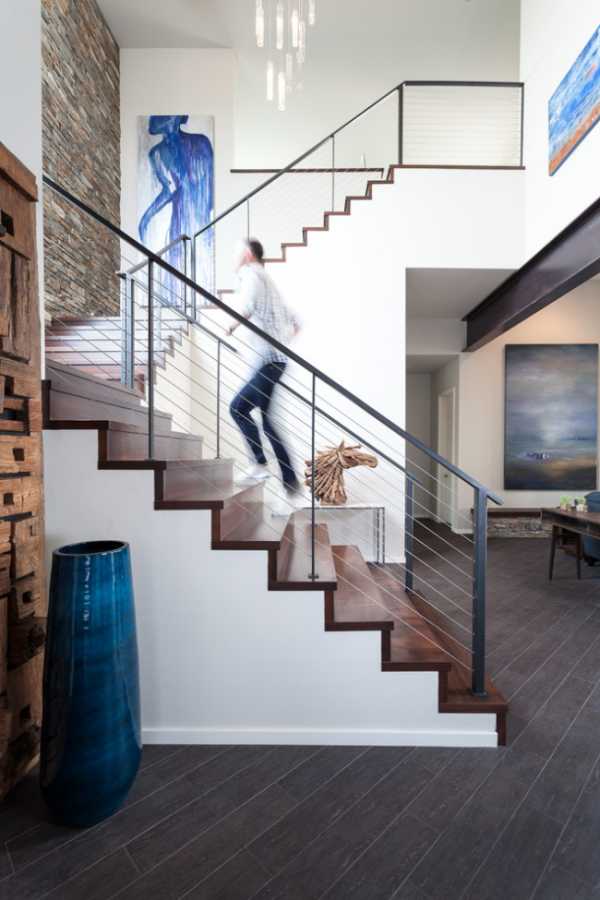 В данной статье вы узнаете, как сделать подобную лестницуПреимущества и недостатки двухмаршевых лестниц на второй этаж