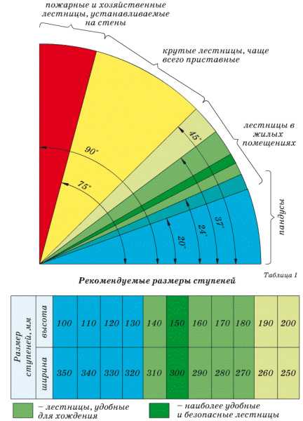 Угол наклона лестницы напрямую зависит от ширины ступеней