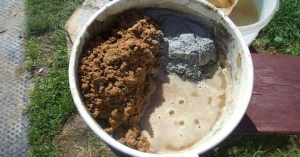 Песок и щебень смешивается постепенно с добавлением небольшого количества воды. Бетонную смесь рекомендуется готовить небольшими порциями, чтобы она не успевала «схватиться».
