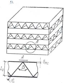 Расход приточного и удаляемого воздуха 5000 кг/ч. Начальная температура удаляемого воздуха tуд.=20°С, влажность φ=25%, влагосодержание d= 3,5 г/кг, Iн= 29 кДж/кг, tр=0,1°С, Iр=9 кДж/кг. Теплообменная поверхность рекуператора собрана из пластин, между которыми расположено оребрение δр=0,15 мм, образующие каналы в виде равносторонних треугольников (