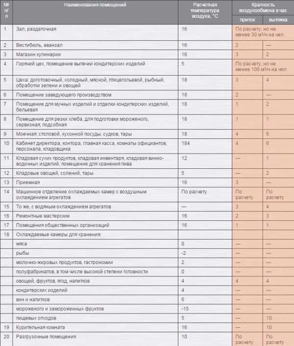 Таблица кратности воздухообмена для магазинов