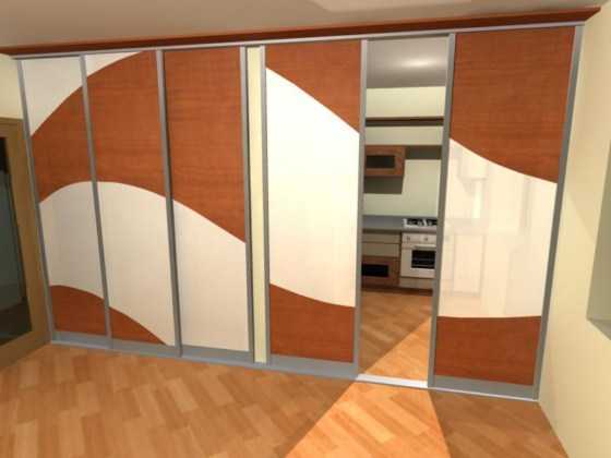 Расположение текстурного рисунка на фасаде корпусной мебели в большой мере служит в качестве достойного визуального эффекта, ломающего реальное представление о габаритных размерах помещения.