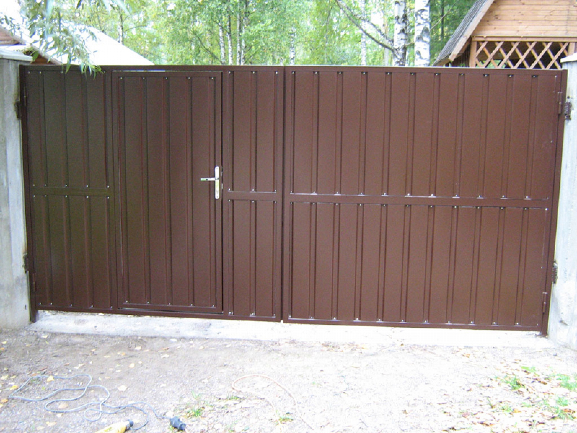 - 8 Ворота распашные металлические с калиткой: фото и нюансы работы