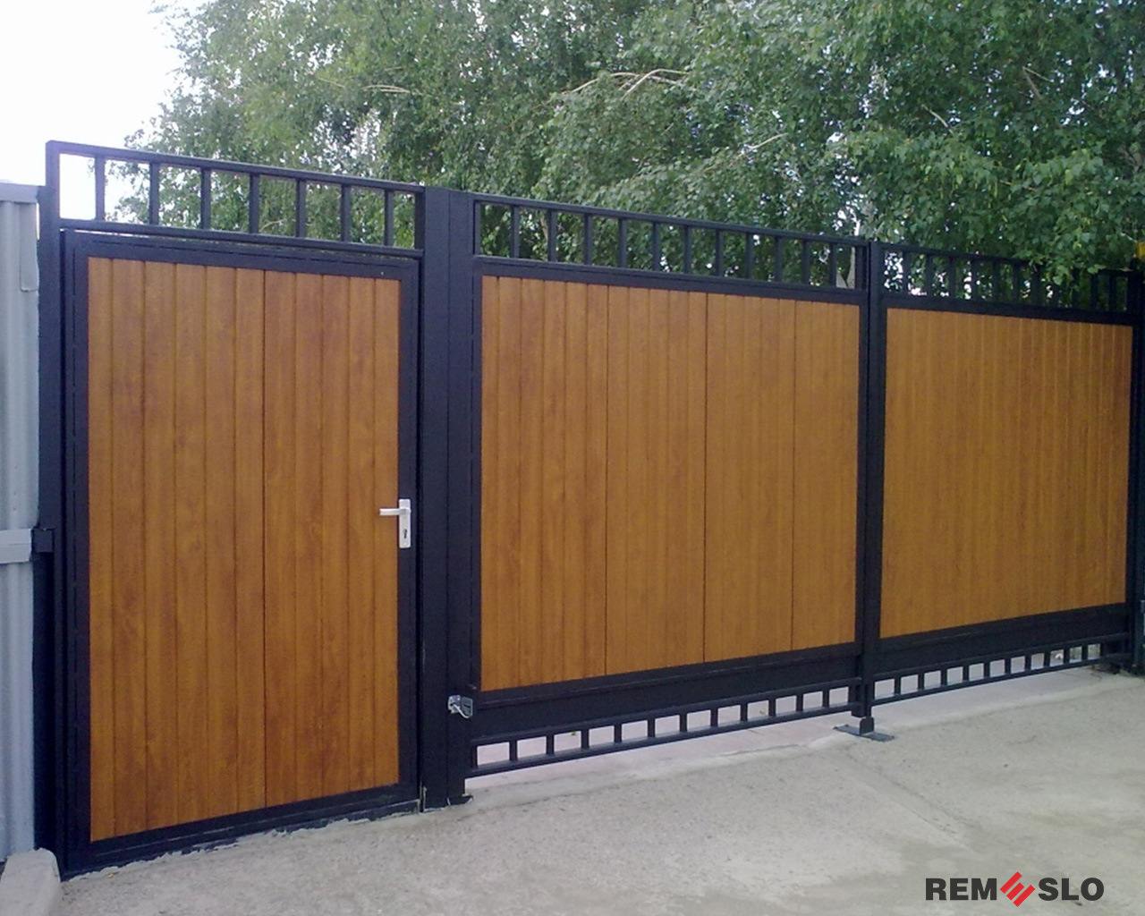 - являются наиболее распространенным вариантом. Установка распашных металлических ворот с калиткой из профнастила отлично подойдет для гаража, склада или производственного помещения. Основными преимуществами являются простота конструкции и простота эксплуатации и обслуживания;
