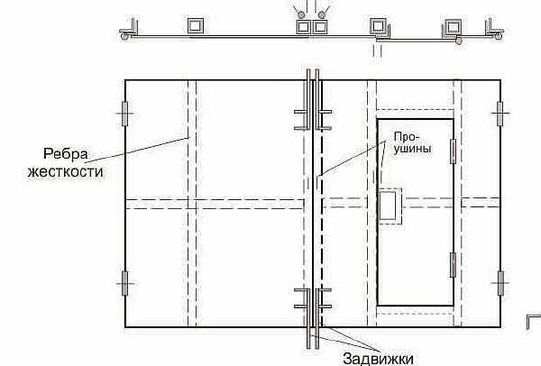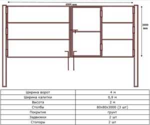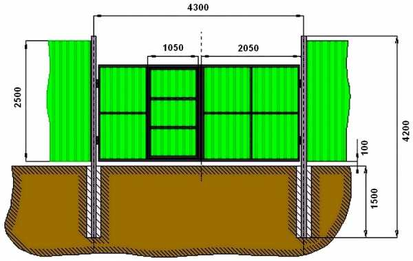 Монтажные размеры ворот из профнастила со встроенной в створку калиткой