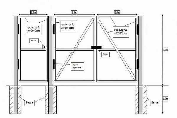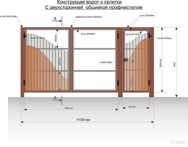 Монтажные размеры распашных ворот и калитки с металлическим каркасом и вставками из профнастила