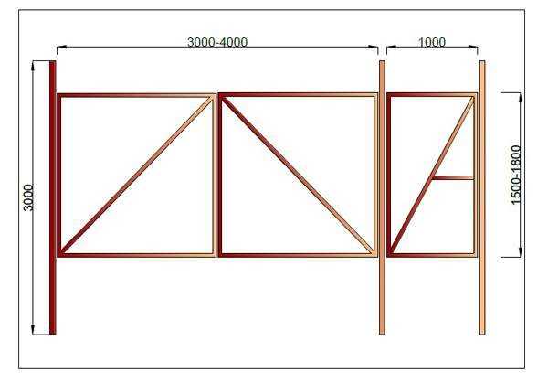 Схема каркаса из профилированной трубы для распашных ворот с калиткой