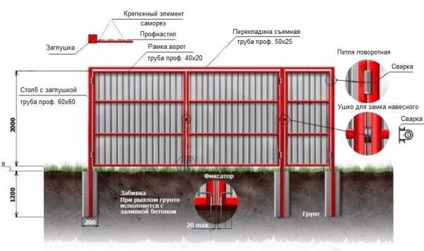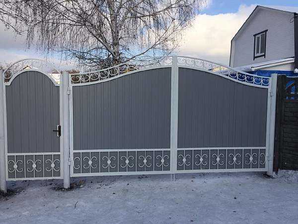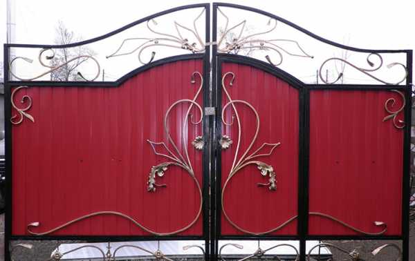 Монтаж ворот из профнастила с элементами ковки: фото и инструкции
