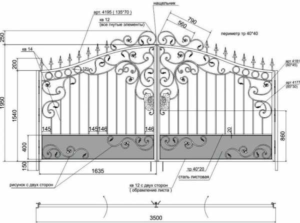 Полезный совет! На чертеже кованых ворот очень важно учитывать точные размеры элементов для того, чтобы в готовом изделии между ними не образовались зазоры.
