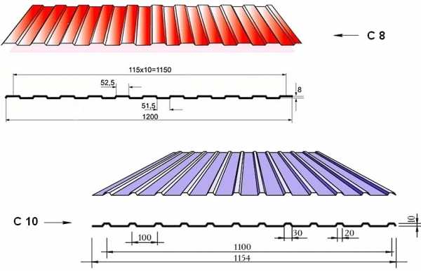 Для создания ворот лучше всего подойдут два типа: С8 и С10. Толщина листов первого составляет 0,4-0,6 мм, а высота волны – 8 мм. Квадратный метр такого листа весит до 5,5 кг, то есть одна стандартная створка размером 2х2,5 м будет весить около 25 кг. С10 изготавливается из стали толщиной до 0,8 мм, высота волны – 10 мм. Он отличается большим весом, одна створка может весить до 40 кг.