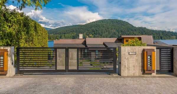 Если отсутствует свободный проход сбоку и нет пространства перед въездом, то устанавливаются сдвижные многосекционные ворота. Они представляют собой симбиоз откатных и распашных систем. При открывании край створки скользит по линии забора.
