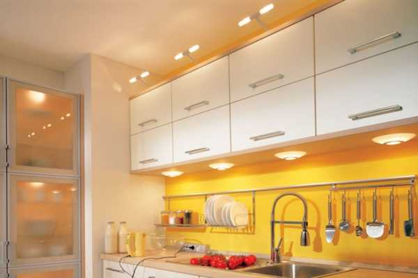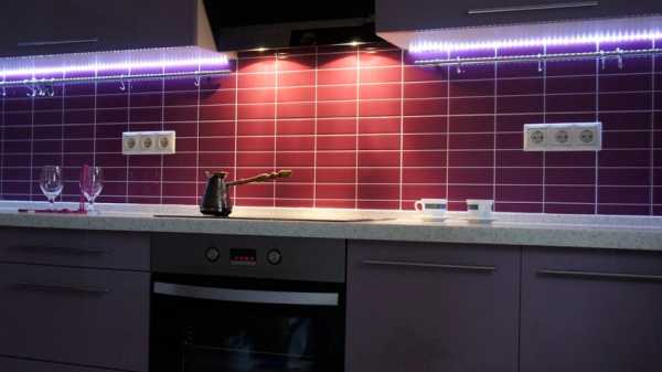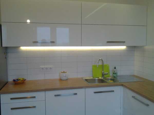 Промежуточная секция – для подключения светодиодной подсветки. Она может быть как под навесными шкафами, так и над ними. В зависимости от того, где располагаются светильники.