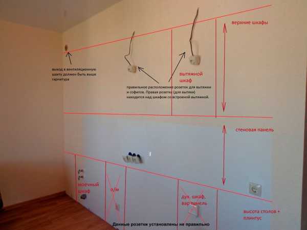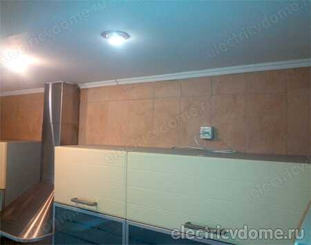 - Для холодильника и вытяжки розетки находятся сверху. Так удобней.