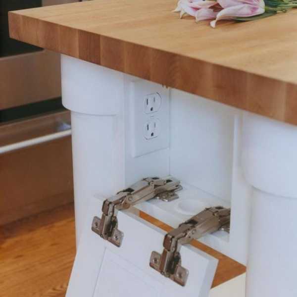 Встроенные розетки. Нажатием на крышечку, вы открываете розетку, как книгу. Такие розетки особенно удобны в обеденной зоне.
