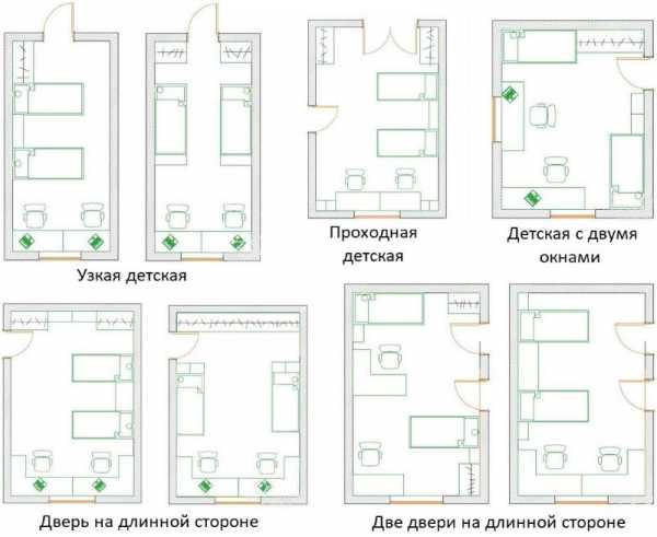 Размещение мебели для двух детей в зависимости от планировки комнаты