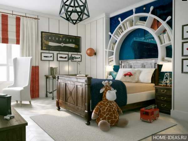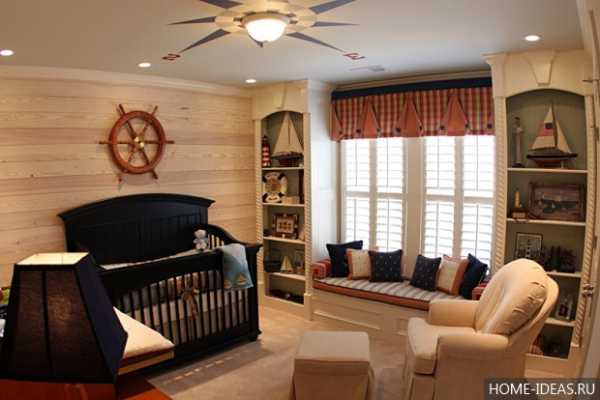 - Оформление угла для мальчика в морском стиле. Это привлекает внимание творческих малышей, которые смогут развить в данной обстановке свои мечты и фантазии.