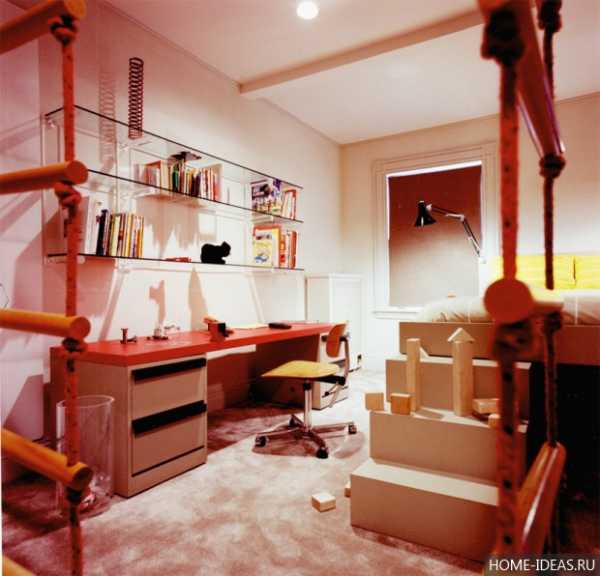 Детям нравится кровать-норка, именно поэтому многих так привлекает верхний ярус двухэтажных кроватей. Можно разместить кровать в самом укромном уголке комнаты или в нише, сделать в виде домика или оформить балдахином.