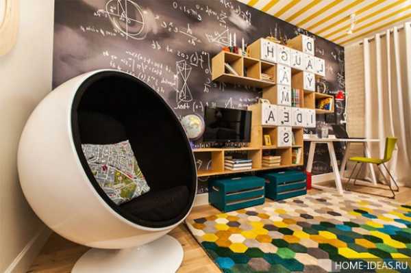 Не забудьте разместить в детской шкафы и полки для учебных материалов. Но также уделите внимание и игровой зоне. Если площадь детской позволяет, то организуйте «спортивный уголок».