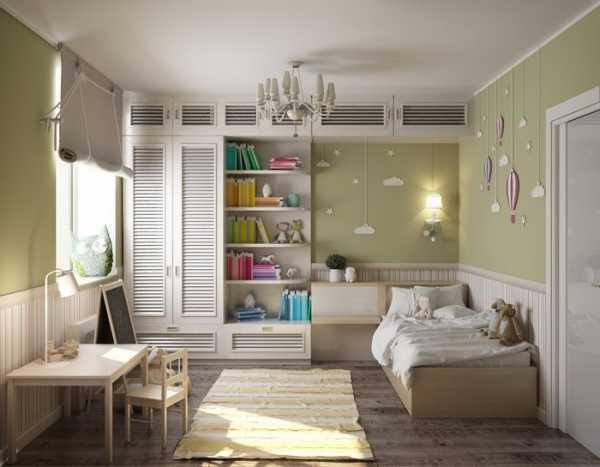 Шкаф или комод для одежды относятся к желательным предметам, но если места совсем мало, то до определенного возраста детская одежда может храниться в шкафу у родителей или в общей гардеробной — побольше места для игр для малышей важнее. Подросток же может пожертвовать свободным пространством для размещения шкафа.