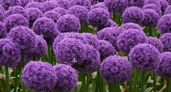 Аллиумы можно использовать в оформлении клумбов, альпинариев, газонов.