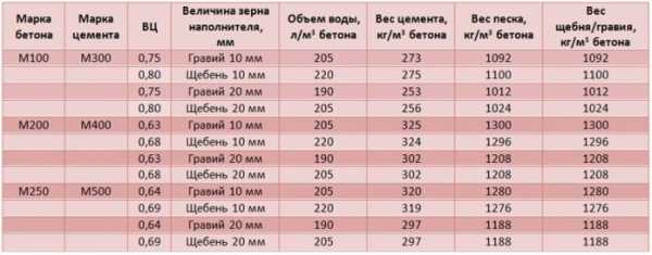 Расход цемента на 1 куб бетона: количество цемента, таблицы