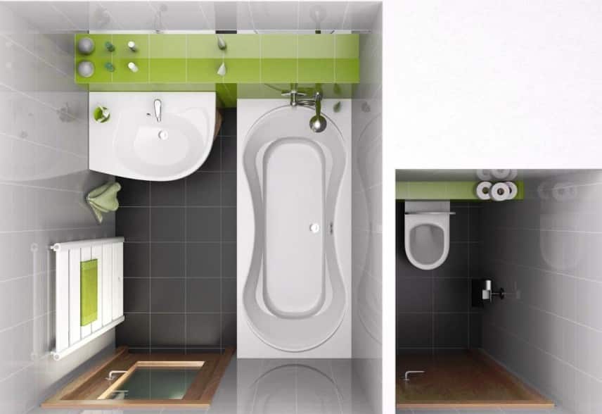 Ванна должна быть небольшой, иначе она не позволит вам установить другие необходимые приборы и предметы интерьера.