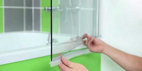 Одну из направляющих фиксируем на герметик к бортику ванны, даем хорошо просохнуть.