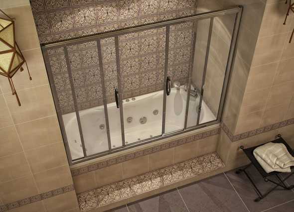 Раздвижная модель- Распашные двери. Подходят больше для угловых ванн. Предпочтительно устанавливать в большие комнаты.