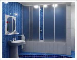 Такая ширма обойдется значительно дешевле. Ее можно установить даже при неровных стенах и справиться с этой работой без посторонней помощи. Имеются и прозрачные ширмы из пластика, как бы под стекло. Непрозрачные же представлены в широкой цветовой гамме, подобрать оптимальный вариант будет нетрудно.