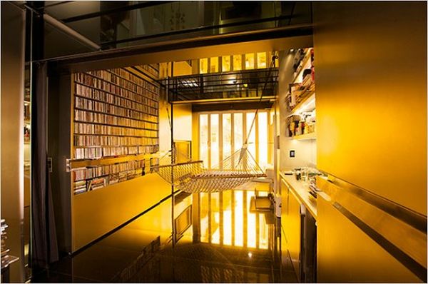 Чтобы иметь доступ в гостиную, сначала нужно поднять кровать в воздух.Он сидит на платформе, которая показывает секцию с журнальным столиком. Кроме того, под полом спальни спрятано второе пространство: столовая. Это в основном позволяет этому пространству служить в качестве спальни, гостиной или кинозала. Это необычный способ экономии места. Конечно, это было бы невозможно без изобретательности дизайнеров мебели, дизайнеров интерьеров и дизайнеров, которые в основном создавали индивидуальные дома.