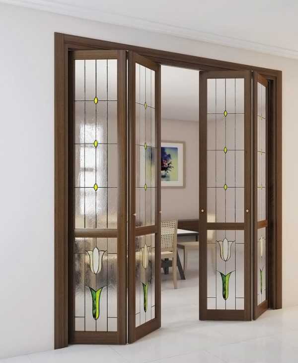 Эксплуатационные свойства и варианты оформления складных межкомнатных дверей с фото в интерьере
